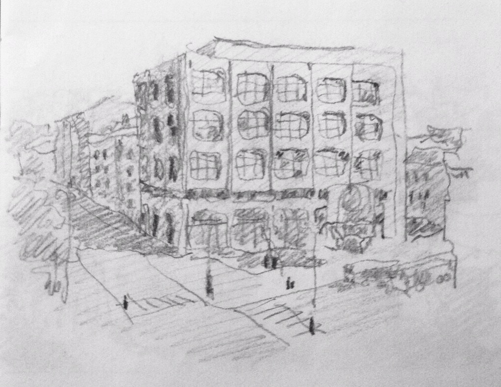 Студенческие эскизы и наброски ? это калейдоскоп стилей, стран, техник исполнения: здесь представлены коллажи, карандашная графика, аппликация, акварель, офорт и компьютерная графика. Прелесть таких работ заключается в их рукодельности, разнообразии и индивидуальности графического языка, в концентрации на архитектуре. И хотя представленные эскизы ? формально учебные, выполненные в рамках программы курса, они уникальны как полноценные художественные произведения. В них известные архитектурные объекты приобретают новое звучание и новое прочтение. При всём стилистическом и содержательном разнообразии выставка становится своеобразным универсальным манифестом архитектуры.