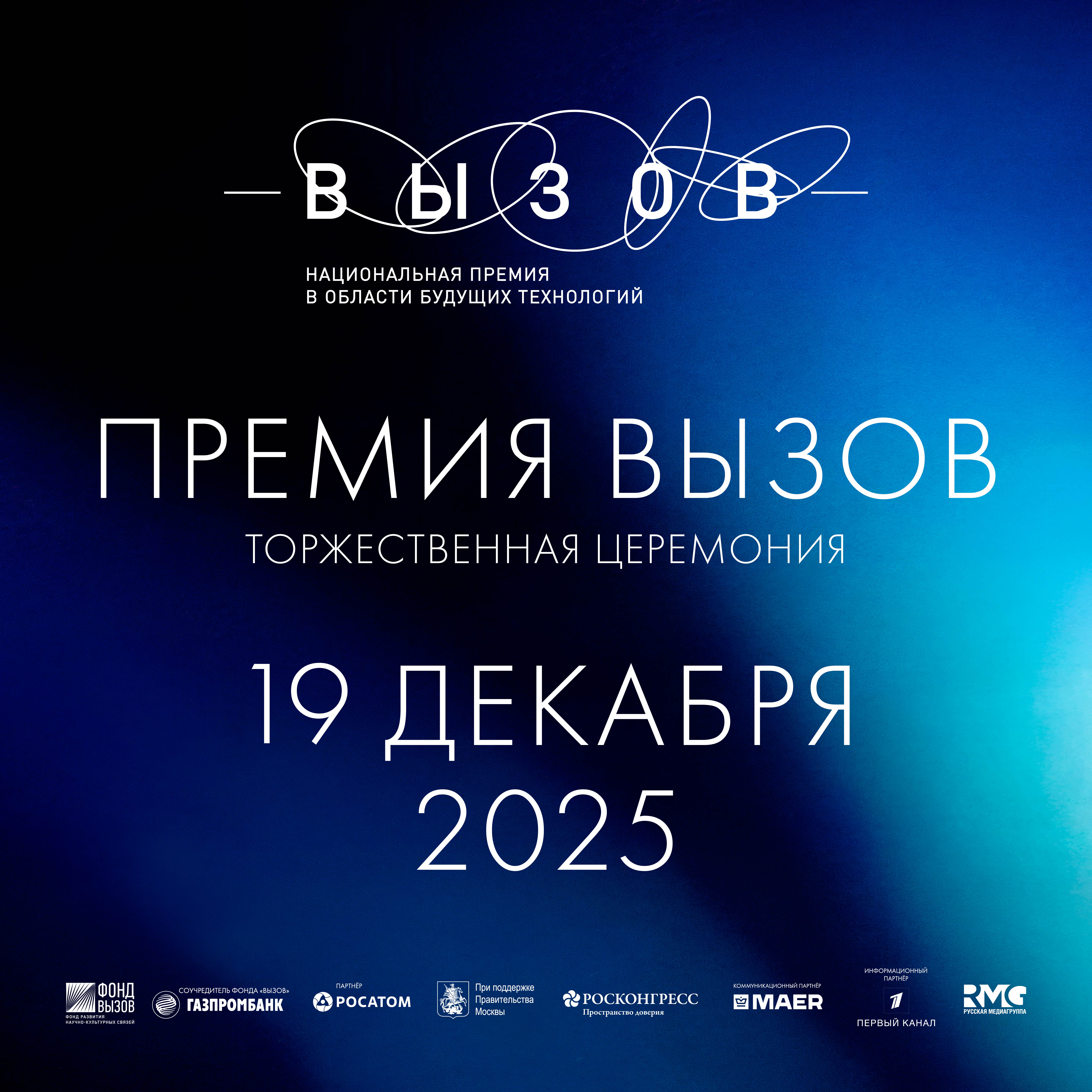 19 декабря в ЦВЗ «Манеж» состоится торжественная церемония вручения Национальной премии в области будущих технологий «ВЫЗОВ». Награды получат лауреаты 2025 года: в номинации «Перспектива» – Вера Виль, в номинации «Инженерное решение» – Михаил Скупов, в номинации «Прорыв» – Илья Ямпольский, в номинации «Учёный года» – Степан Калмыков, в международной номинации Discovery («Открытие») – Валерий Фокин (США).