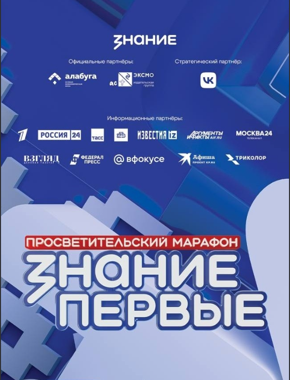 Первый федеральный просветительский марафон Знание.Первые был организован в мае 2021 года и стал символом перезагрузки Общества «Знание». За пять лет прошло уже десять марафонов, в рамках которых состоялось более 1600 встреч молодежи с выдающимися людьми, а трансляции этих событий набрали более 1,3 млрд просмотров. Мероприятие организовано в рамках национального проекта «Молодежь и дети».