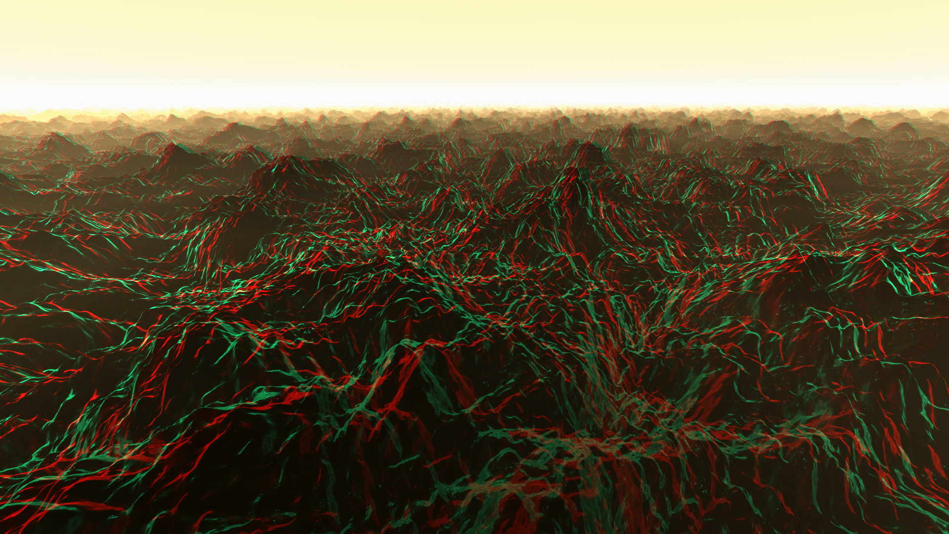 «Земли» – в данном случае вовсе не обязательно твердая поверхность (в работах есть и водная гладь, колыхаемая волнами), скорее – направления в пространстве и времени, уводящие воображение зрителя далеко за пределы стратосферы. Видео лишены сюжетной линии и, на первый взгляд, неподвижны, но что-то происходит с самими ландшафтами, с их мощными и одновременно зыбкими текстурами. Может показаться, что это виды из космоса, пейзажи других планет, и тогда неизбежны ассоциации с научно-фантастическими фильмами или документальными кадрами, передаваемыми на Землю марсоходом «Curiosity». «Земли» погружают зрителя в атмосферу неопределенности и тревоги, она создается как за счет новых технологий (работы предлагается смотреть сквозь специальные очки), так и с помощью ключевых кадров, программы 3D-моделирования, искусственно созданных звуков.